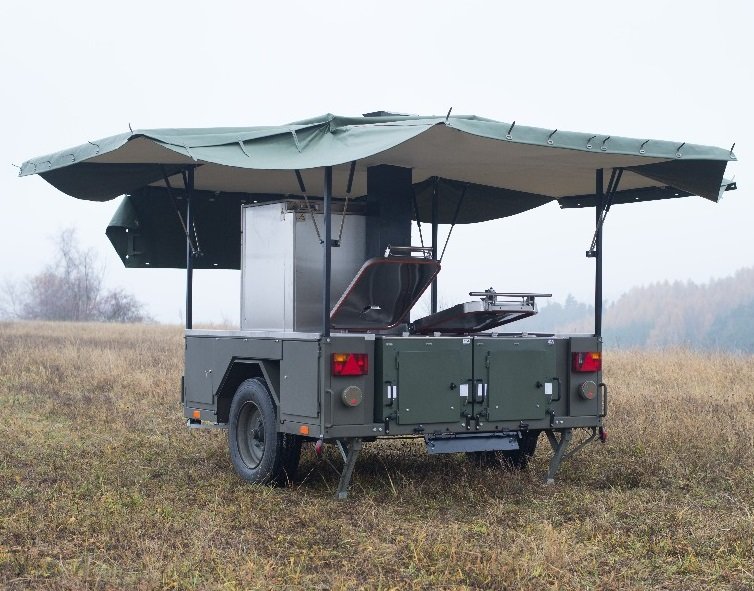 Přívěsná polní kuchyně. Dodávka 3 kusů modulární polní kuchyně na jednoosém terénním přívěsu cena 17 107 625 Kč s DPH.