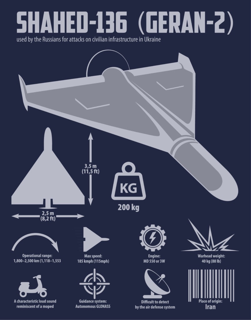 Zajímavý je i váhový rozdíl. Oproti původní verzi váží Geran-3 380 kg, tedy víc o 130 kg. Celé mi to přijde v podstatě jako propaganda. Příště ho trochu zúží, přidají špičku, pár křidélek a... ve výsledku to bude černý Kinžal - nazvaný Geran-4. Akorát že získat proudové motory je pro Rusko asi poněkud větší oříšek než propašovat z Číny motor do sekačky - co mají konvenční Šahedy / Gerany.