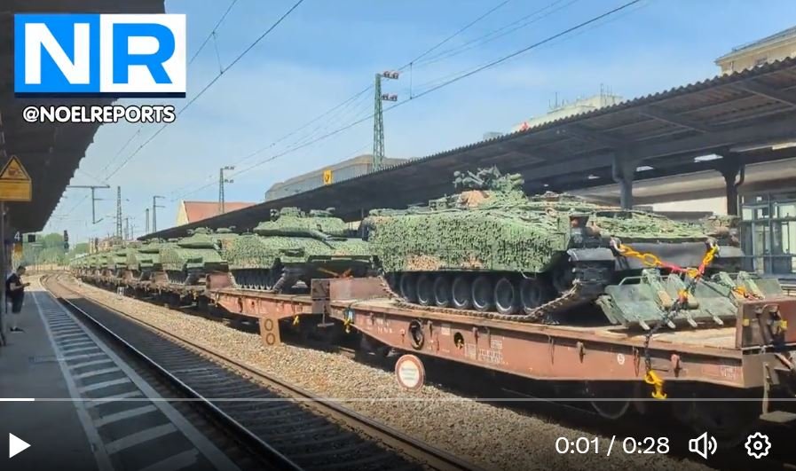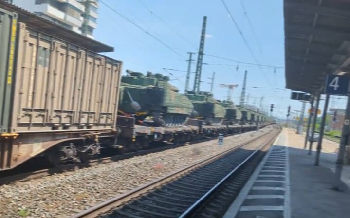 Vlak plně naložený bojovými vozidly CV90 (zdá se že se jim dostalo i pořádné péče) jede na Ukrajinu...
