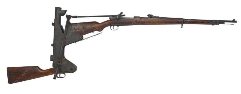 Zákopová válka si vyžádala inovace ve způsobu nasazení střelných zbraní, aby se vojáci nevystavovali příliš velkému nebezpečí. Jednou z nich bylo zavedení speciálního mechanismu, který v sobě slučoval zákopový periskop, pažbu a napínací mechanismus umožňující přebytí zbraně. Šlo o zařízení, díky kterému mohli vojáci střílet z pušek z bezpečí zákopu. Všechny strany vyvinuly různé typy periskopů a spouště byly spojeny ocelovým lankem. V rakousko-uherské a německé armádě se takovéto zákopové mechanismy vyskytují od roku 1915 a nazývají se "Spiegelkolben". Zde na fotografiích můžeme vidět zákopovou úpravu standardní pěchotní pušky Mannlicher. Konkrétně jde o pušku vzor 1895, která je specifická svým přímotažným závěrem se zdokonaleným uzamykacím mechanizmem, tvořeným otočným závorníkem, vybaveným v přední části dvěma uzamykacími ozuby. U tohoto typu závěru nedochází k odemčení otáčením závěru okolo podélné osy, ale přímotažným pohybem, což mimo jiné zrychlilo střelbu. Nadšení z jednoduchého ovládání závěru ale po zkušenostech z boje opadlo. Řešení mělo své nedostatky, závěr vyžadoval poměrně velkou sílu k otevření. Zejména v mrazu nebo blátivých podmínkách mohlo docházet k zaseknutí nebo velmi obtížnému otevření. Vojáci tak často museli na závěr i šlápnout, aby s ním pohnuli.