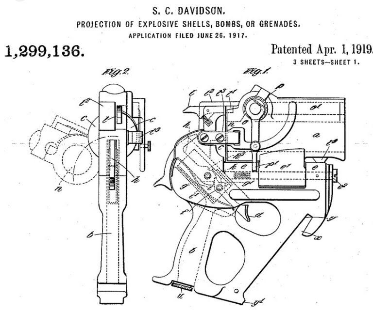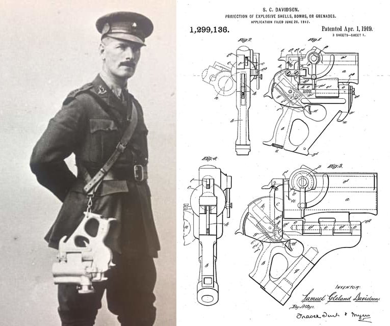 V roce 1917 sestrojil britský vynálezce Sir Samuel Cleland Davidson (1846-1921) zbraň nazvanou "Hand Howitzer" (ruční houfnice). V podstatě šlo o ruční granátomet, který bylo možno, dle patentového výkresu, osadit na podstavec. O zbraň projevila zájem americká armáda, leč nikdy nebyla podepsána smlouva o sériové výrobě. Zůstalo tak tedy pouze u prototypu. Davidson zbraň navrhl pro nasazení v zákopových bojích, kde jeho syn James Samuel Davidson (1877–1916) sloužil jako dobrovolník, kapitán u 13th Royal Irish Rifles - 36th (Ulster) Division. Hned první den bitvy na Sommě (prvního července 1916), byl po urputných bojích zasažen do kolene. Během návratu do vlastního zákopu byl ale zabit německým odstřelovačem. Sir Samuel Cleland Davidson je rovněž znám jako zakladatel společnosti Sirocco Works (1881) se sídlem v Belfastu. Společnost dodávala vybavení pro Royal Navy a Merchant Navy. Před tím než bylo roku 1919 potopeno německé loďstvo ve Scapa Flow, bylo zjištěno, že téměř každá z lodí byla vybavena ventilátory Sirocco, dodaných před vypuknutím války.