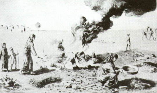 Kurdky pálí těla ubitých asyrských křesťanek, ve snaze najít jimi spolykané cennosti