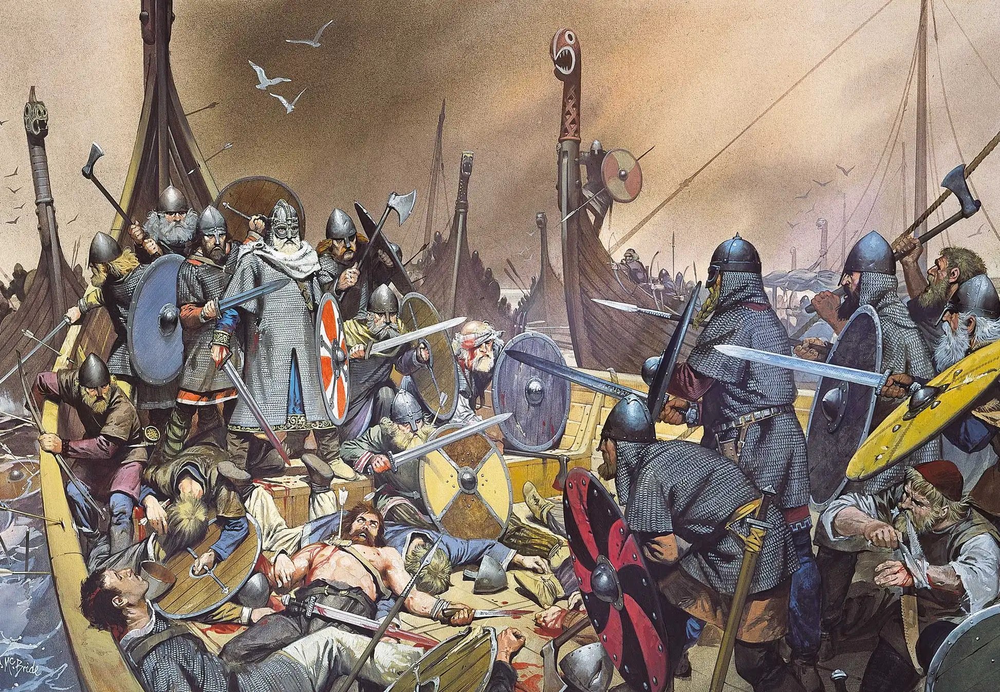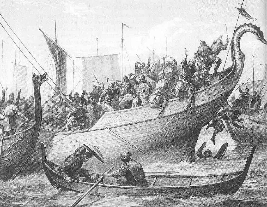 V příběhu o bitvě u Svöldru se zmiňuje jistý Einar Thambarskelfir, který stál vedle krále Olafa Tryggvasona. Poté, co těsně minul nepřátelského velitele, byl jeho luk zlomený zásahem šípu. Olaf se jej zeptal, co to prasklo s takovým hlukem: a on odpověděl: "To Norsko, Sire, vyskočilo z tvých rukou." Poslední stání krále Olafa Tryggvasona v bitvě u Svolderu. Malba Anguse Mcbridea. Námořní bitva u Svolderu se odehrála v Baltském moři, v níž se 9. září 1000 (někdy se udává i 999) střetlo norské loďstvo pod vedením krále Olafa Tryggvasona s dánsko-švédským loďstvem podpořeným norským šlechticem Eiríkrem Hákonarsonem, jarlem z Lade. Norové shromáždili celkem 11 velkých lodí, kterým čelilo zhruba 70 lodí. Bitva skončila drtivou porážkou norských sil a smrtí norského krále, vítězové si pak zemi rozparcelovali. Ti utrpěli těžké ztráty, ale zmocnili se též všech norských lodí. Některé zdroje uvádějí, že norský král Olaf spáchal sebevraždu, když v plné zbroji skočil přes palubu, jiné uvádějí, že se mu podařilo uprchnout (ať již plaváním, nebo že byl zachráněn na palubě vendské lodi) a dožil v mnišském řádu, kde hledal spásu za své hříchy. Svolder byl ostrov pravděpodobně na severním pobřeží Německa blízko Rujány. Přesné místo bitvy nebylo dodnes identifikováno, protože Baltické pobřeží bylo v následujících staletích hodně měněno, částečně od zanášení moře a částečně od bouřek ze 14. století.