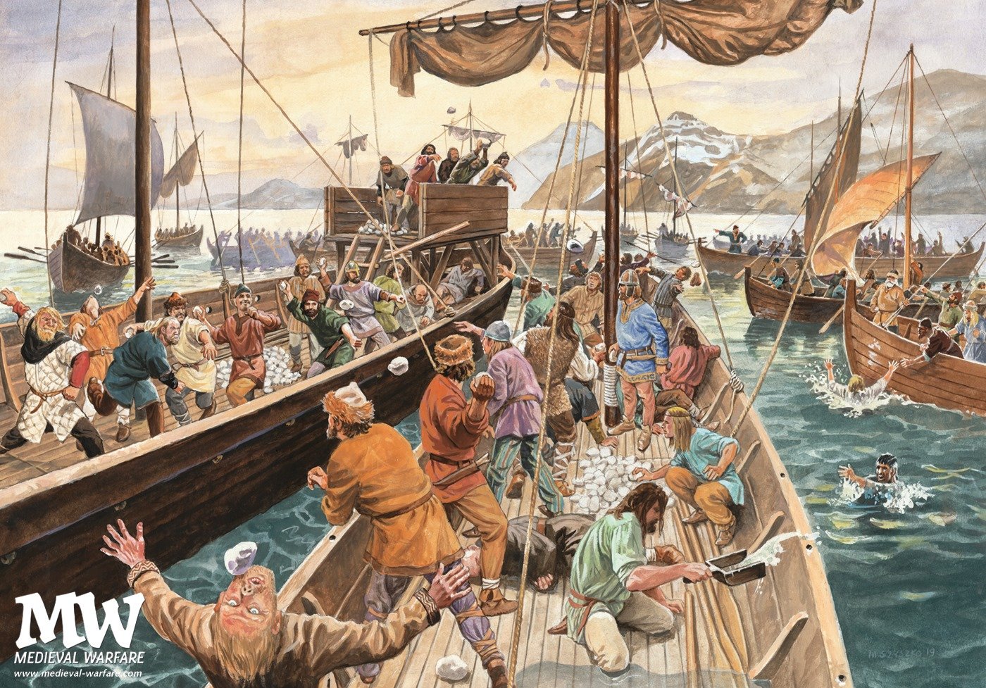Vikingská námořní koulovajda v Islandském stylu. No, vlastně nejde o sněhové koule ale o kameny a právě zuří krvavá občanská válka mezi znesvářenými ostrovními klany. Námořní bitva o Flóabardagi (záliv) se odehrála 25. června 1244 v islandském zálivu Húnaflói během občanské války za éry Sturlungů. právě z tohoto rodu pocházel Þórður kakali Sighvatsson (1210-1256), který se se svými stoupenci postavil Kolbeinnu ungi Arnórssonovi (1208-1245). Kolbeinnovi muži byli seveřané, kdežto jejich nepřátelé pocházeli ze Západních fjordů Islandu. Primárními zbraněmi tehdy byly kameny házené mezi čluny. Podrobný popis bitvy lze nalézt ve Sturlungské sáze.