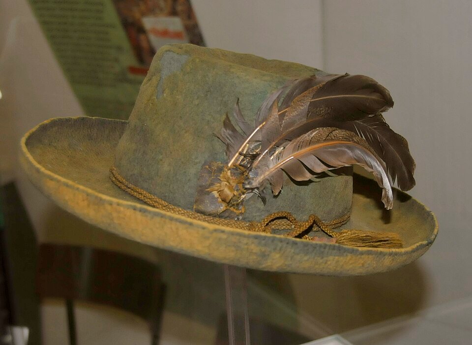 Zachoval se klobouk loupežníka Schinderhannese, ale tvarově je dost jiný, než co si s onou dobou spojujeme. Asi jako buřinky na Divokém západě