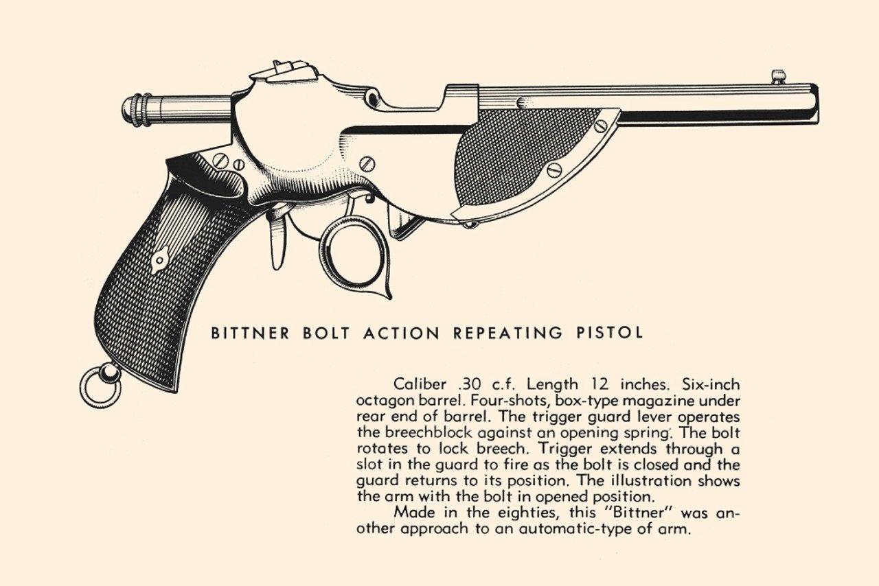 V průběhu osmdesátých let 19. století vznikla v habsburské monarchii řada konstrukcí opakovacích pistolí, jež sice umožňovaly vyšší rychlost střelby, avšak jejich mnohdy důmyslné konstrukce upadly s nástupem samonabíjecích zbraní do zapomnění. Krušnohorská továrna na výrobu zbraní Gustav Bittner, sídlící v dnešních severočeských Vejprtech, se specializovala především na výrobu loveckých zbraní. V devadesátých letech 19. století ale vyráběla také opakovací pistole vlastní konstrukce. Ty byly především doplňkem standardního sortimentu, s nímž přišla firma na trh v době, kdy se již ke slovu dostávaly první modely samonabíjecích pistolí. Jim také patřila budoucnost. Charakteristickým rysem pistolí Bittner byl, podobně jako modelu Passler & Seidl z roku 1887 (vyráběnými ve Vídni), pohyblivý prstenec, jehož stlačením se uzavíral a uzamykal válcový odsuvný závěr. Bicí mechanismus tvořil přímoběžný úderník. K zásobování sloužil ocelový rámeček s pěti náboji, tlačenými do nábojiště odpruženou pákou podavače. U Bittnerovy pistole se podavač od předchozích lišil tím, že jej tvořila jednoramenná páka. Nebyla však zavěšena na hlavni, nýbrž uložena v ocelovém nosníku pod hlavní a chránilo ji dřevěné předpažbí s rybinově zdrsněnými bočními plochami. Další odlišnost představovala příčně suvná válcová pojistka, uložená v těle pistole, jež blokovala v zajištěné poloze pohyb spouště. Zatímco "vídeňské" modely byly zařízeny na revolverový okrajový náboj .320 CF, Bittnerova pistole používala rozměrově mírně odlišný náboj označovaný jako 7,7 mm Bittner. Celkový počet vyrobených kusů není dodnes přesně znám a dříve byl poněkud mylně odhadován na 3 000 kusů. Reálnější je spíš, že Bittnerovu továrnu ve Vejprtech opustilo nejvýše 500 pistolí. Dosud nejvyšší známé výrobní číslo pistole Bittner je totiž 493, u ostatních kusů s udávanými čtyřcifernými čísly se s největší pravděpodobností jedná o pořadová čísla protokolu, vyražená vespod na hlavni. Pistole Bittner jsou dnes vyhledávanou a vysoce ceněnou sběratelskou záležitostí.