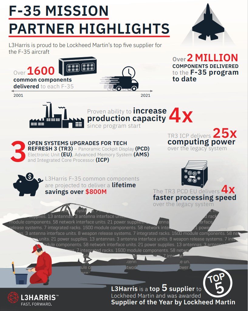 Společnost L3Harris dodává letounu F-35 - komunikaci v kokpitu, zpracování dat, sofistikovanou avioniku a technologie elektronického boje.