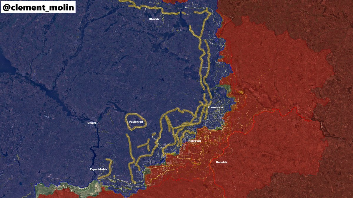 Ukrajinská armáda pokračuje v přípravě svých nových obranných linií, zejména podél osy Pavlohrad, Záporoží a západně od Kramatorsku. Zde je aktuální stav těchto hlavních opevňovacích linií (Nová Donbaská linie), ze kterých bylo dosaženo pouze jedné (která nebyla dokončena, blízko Ivanivky). Rusové se blíží k úseku linie západně od Hulialpole (Ternuvate) a směrem k Dobropille; čas na rozsáhlý test k ověření jejich účinnosti brzy přijde.
