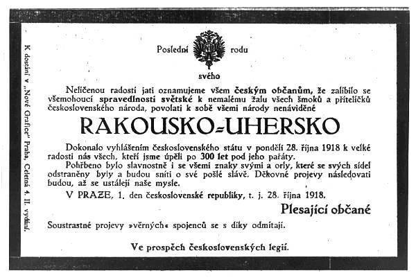 Dokonalo vyhlášením československého státu v pondělí dne 28. října 1918 k nemalé