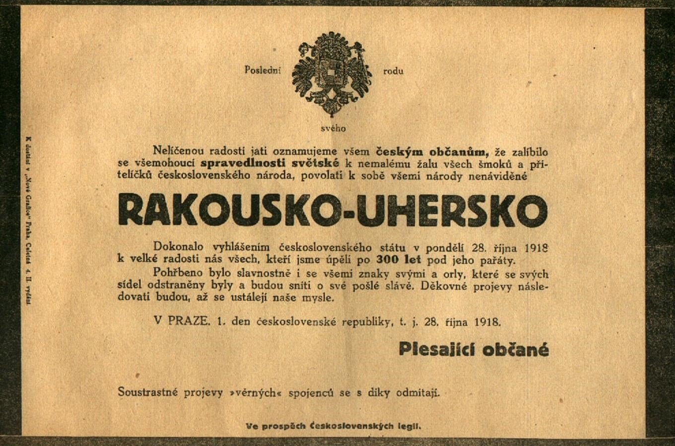 Leták z konce října 1918 – naskenováno z časopisu živá Historie listopad 2010