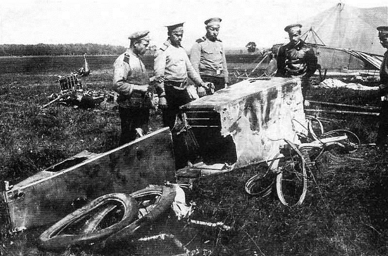 ruští důstojníci u trosek letounu Františka Maliny