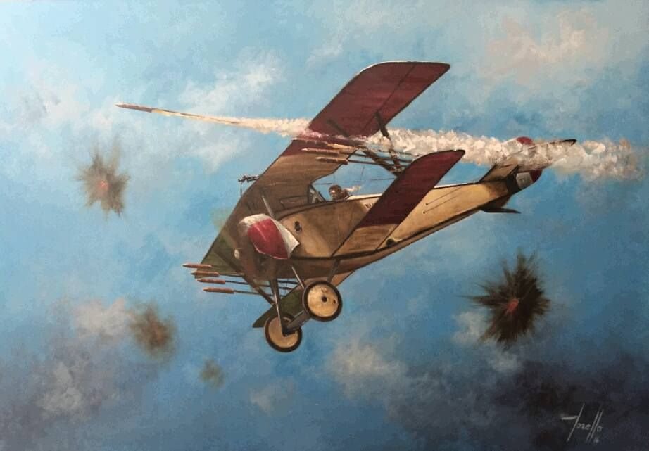 "Netrefil! Čert tě vzal!" Poručík si strhává rukavice, které vítr vzápětí odnese kamsi do neznáma. Poručík tomu však nevěnuje pozornost, neboť mezitím letoun odpálí další raketu. Znovu se chápe kulometu a tiskne spoušť.