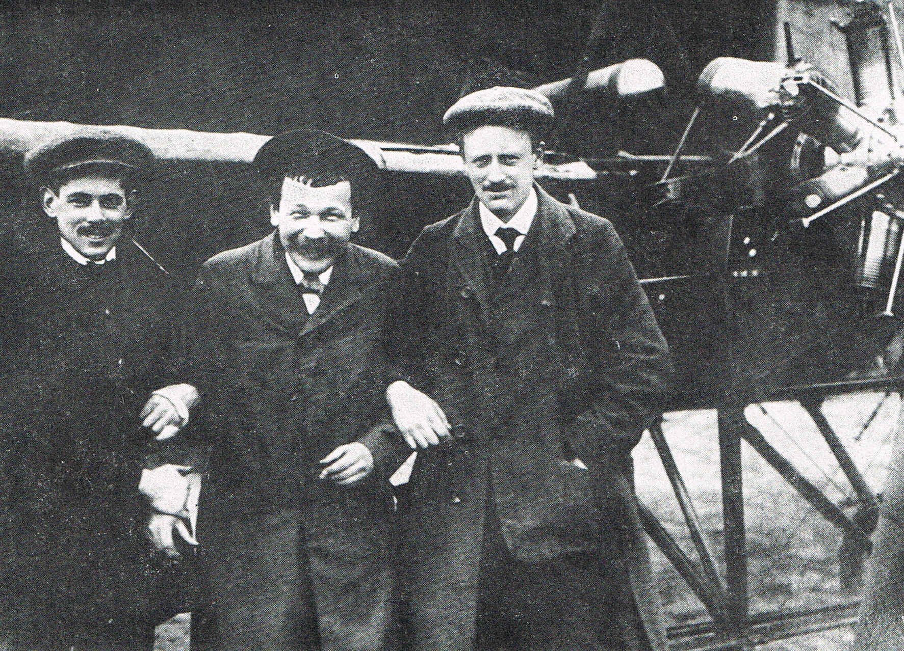 Kašparovo dvousedadlové letadlo JK v září 1910. Zleva: