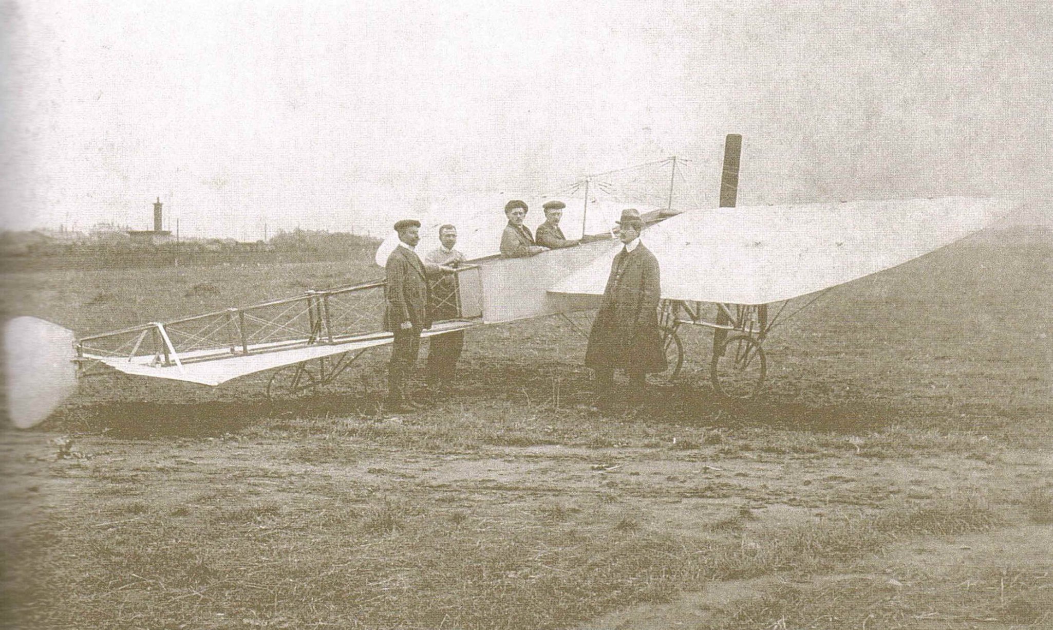 Kašparovo dvousedadlové letadlo JK v září 1910. Zleva: