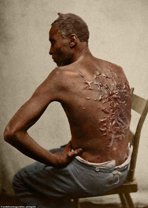 Ikonickým snímkem boje za práva černochů v USA, je pohlednice z roku 1863, zobrazující uprchlého otroka jménem Gordon, se zády pokrytými jizvami od biče. Muž byl známý též jako "Whipped Peter" (bičovaný Petr) a původně pracoval na plantáži v Atchafalya, poblíž Washingtonu v Louisianě, kterou vlastnil John a Bridget Lyonsovi. Ti vlastnili celkem 40 otroků a farma měla rozlohu 3 000 akrů (12 km čtverečních). Jizvy mu způsobil bičem dozorce Artayou Carrier po ne zcela jasné události, kdy v záchvatu šílenství spálil všechny své šaty, chtěl zastřelit svou ženu a všechny kolem (nikoho ale nezabil). Samotný Gordon si na událost nevzpomínal a bylo mu to řečeno až na lůžku. Dva měsíce se ze zranění léčil a mezitím jej navšívil jeho pán kapitán John Lyons, který nebyl přítomen u bičování a Carriera propustil. Gordon utekl z farmy v březnu 1863 a aby zmátl pronásledovatele, vzal s sebou z farmy cibuli, kterou si vždy po překonání potoku nebo bažiny potřel kůži. Během deseti dnů uběhl víc jak 64 km, než se dostal k unionistickým pozicím XIX. sboru u Baton Rouge. Druhého dubna prošel lékařskou prohlídkou, která odhalila výrazné Keloidní jizvy (keloidy) způsobené bičem. Ve vojenském táboře byli přítomni fotografové William D. McPherson a pan Oliver, kteří jej neprodleně vyfotografovali. Tři měsíce po té, co bývalí otroci mohli vstoupit do armády, se i Godon přidal k armádě Unie. Při jedné výpravě byl zajat Konfederačními vojáky, kteří jej svázali, zmlátili a nechali ležet, domnívajíc se že je mrtvý. Přežil a opět se vrátil k vládním jednotkám. V jednotce Corps d'Afrique to dotáhl až na hodnost seržanta a v květnu 1863 se účastnil obléhání Port Hudson, kde právě černí vojáci byli v čele útoku. Pohlednice se zbičovanými zádami uprchlého otroka a nyní vojáka Unie, rychle obletěly zem a v červenci byly otištěny spolu s jeho příběhem v nejčtenějším časopise Harper's Weekly.