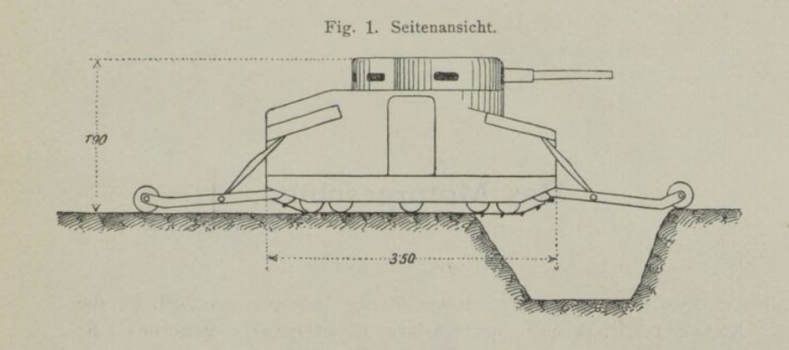 Günther Adolf Burstyn (1879-1945) se narodil 6. července roku 1879 v Bad Aussee ve Štýrsku, jako jeden ze tří synů Adolfa Burstyna (1843–1917) a jeho ženy Juliane, rozené Hoffmannové (1844–1931). Jeho otec pocházel z židovské rodiny ze Lvova, avšak konvertoval ke katolické víře. Pracoval jako vrchní inspektor rakouských drah, jeho manželka se živila jako novinářka. Jeden bratr zastával funkci ministerského rady, další byl významným profesorem elektrotechniky. Günther studoval na jednom z vídeňských gymnázií, ale nejspíše rodinná predispozice k technickým vědám jej přiměla přejít v roce 1895 na ženijní kadetku v Hainburg an der Donau. V roce 1899 byl vyřazen a nastoupil jako kadet k Železničnímu a telegrafnímu pluku. V květnu 1906 byl povýšen do hodnosti nadporučíka a v listopadu téhož roku přidělen k ženijnímu velitelství v Tridentu. V roce 1910 konvertoval k evangelictví, oženil se s Gabriele Wagnerovou a měl s ní dvě děti. V roce 1911 přišel s náčrtem motorizovaného děla - Motorgeschütz, inspirovaného u lehkých a rychlých lodí námořnictva. Jednalo se o překvapivě moderní konstrukci stroje, který disponoval pásy, korbou se spalovacím motorem, prostornou otočnou věží, rychlopalným dělem ráže 37 mm ve věži jako hlavní výzbrojí, dvěma kulomety jako pomocnou výzbrojí, ochranným pancéřováním a schopností překonávat terénní překážky. Délka měla být 3,5 m, výška 1,9 m, šířka 1,9 m, šířka věže 1,3 m a celková hmotnost 7 tun. Motor o výkonu 45 koní měl vozidlo rozpohybovat rychlostí až 28 km/h na silnici a 8 km/h v terénu. Čelní pancíř měl mít 8 mm, boky 4 mm a strop 3 mm. Posádku by tvořili tři muži: velitel-střelec, střelec a řidič. Velice zajímavé bylo překonávání zákopů, pomocí ramen v přední i zadní části trupu, které měly zabránit, aby tank uvízl v těžkém terénu.