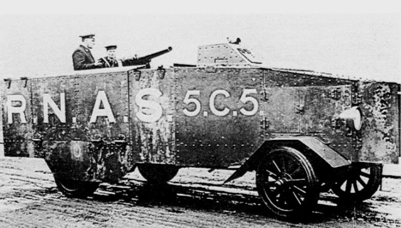 Vývoj obrněných vozů v Británii, byl přes počáteční snahy téměř nulový a počátek války je zasáhl prakticky nepřipravené. Jedinou britskou jednotku automobilů provozovala Royal Naval Air Service (RNAS) a byly přiřazeny k její pozemní sekci, velel jí Wing Commander Charles Rumney Samson (1883–1931). V srpnu 1914 byly v Dunkirku dva automobily Rolls Royce AC vyzbrojeny kulomety Vickers-Maxim ráže 7,62 mm a po několika výpadech je vojáci provizorně osadili pancéřováním z kotlového plechu. Výsledek byl natolik úspěšný, že již v říjnu 1914 byly všechny dostupné automobily Rolls Royce Silver Ghost, přestavěny na obrněné vozy. Práce probíhaly již v Británii a k obložení byl použit klasický pancéřový plech. Téhož měsíce se skupina důstojníků RNAS nechala ve Francii vyrobit rovněž pancéřovaný automobil osazený tříliberním poloautomatickým dělem ráže 47 mm, který měl spoužit k podpoře lehčeji vyzbrojených obrněnců. Jako základ byl vybrán pětitunový podvozek značky Seabrook. Ti ale pouze nakupovali díly od amerických výrobců a kvůli úsporám je nechávali sestavovat v Británii pod svou značkou. Případně přeprodávali vozy americké firmy Standard Motor Truck Company, několik sedítek vozů značky Seabrook montovala firma Portholme Aerodrome. Tu odkoupila firma Handley Page Ltd., která zde pak vyráběla karoserie pro automobily. Vratmě se ale k našemu dělovému obrněnému automobilu. Jak bylo zmíněno, podvozek samotný vážil 5 tun a pancéřování o síle 8 mm váhu ještě zvýšilo na dvojnásobek. Pohon měl zajistit motor o výkonu 32 koní, což se ukázalo být největším problémem. Výzbroj tvořil námořní kanón Ordnance QF 3-pounder Vickers (47 mm/L50) o váze 600 kg, vyráběný od roku 1905, dále zde měla osádka k dispozici čtyři kulomety Vickers-Maxim. První vůz převzalo RNAS v únoru 1915, leč kvůli své váze nebyly schopny podporovat lehčí kulometné obrněné vozy. Bylo tedy rozhodnuto o vytvoření samostatných jednotek těžkých obrněných vozů, pro které však již nebylo využití. Mobilní válka se změnila na zákopovou a tak se generalita, v listopadu 1915, rozhodla přesunout obrněné vozy do severní Afriky. Na egyptsko-libyjské hranici totiž probíhaly boje s místním kmenem Senussiů, který se přidal na stranu Osmanské říše. Opět se ale ukázalo, že vozy jsou příliš těžké a podmotorované, přičemž nebyly schopny bojového nasazení, ale ani samostatných přesunů.