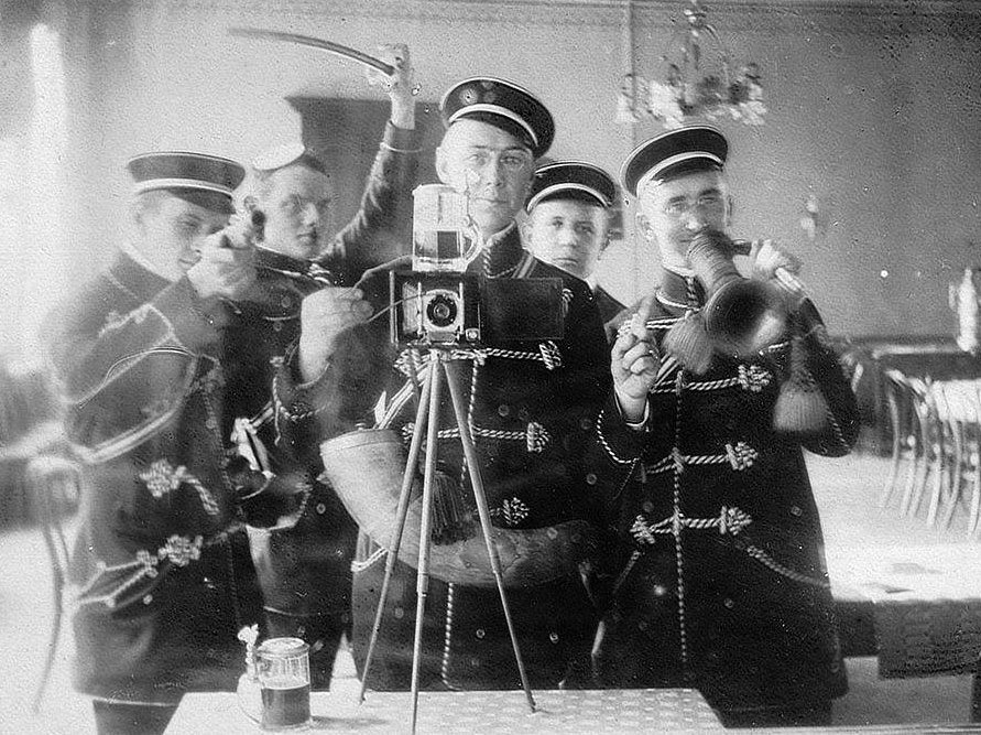 Zrcadlové selfíčko členů Buršáckého spolku (1912)