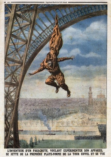 Funkci padákového obleku přesvědčivě prokázala (o 50 let později) jedna Francouzka, která v sebevražedném pokusu skočila ze stejného patra Eiffelovy věže jako Reichelt. Šaty a kabát se jí odporem vzduchu při pádu rozevřely a pád zpomalily, navíc dopadla na střechu osobního auta. Měla přežít pouze s odraženou slezinou; jiná zpráva udávala, že si zlomila čelist. To jsme pohotově vysvětlili; po jejím dopadu vyskočil z auta řidič a když viděl způsobenou škodu, vrazil té ženské takovou facku, až jí zlomil čelist.