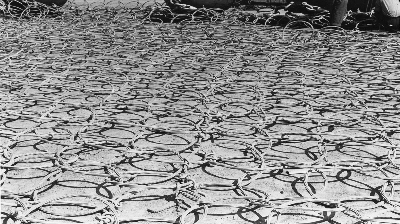 Kovové protiponorkové sítě používané k ochraně přístavů.