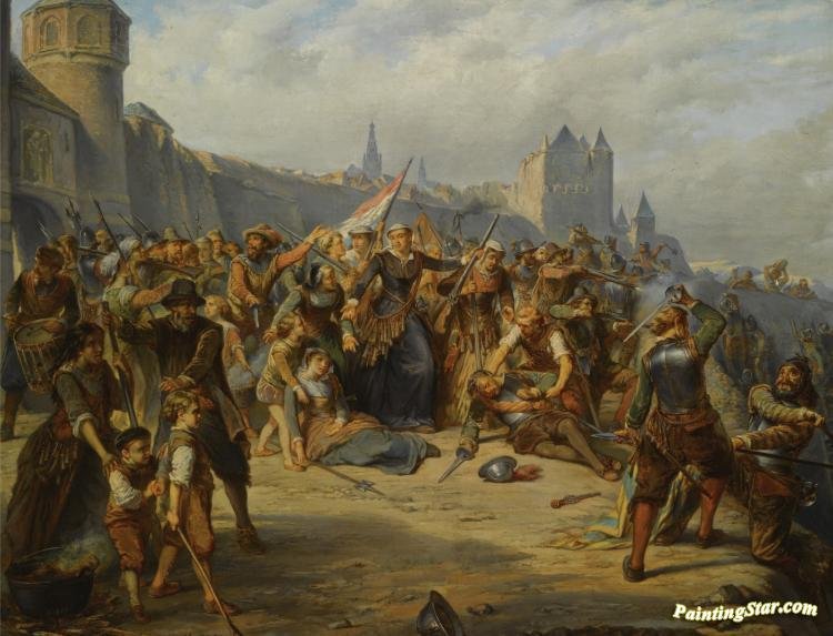 Haarlemská obchodnice se dřevem Kenau Simonsdochter Hasselaer (1526-1588) se stala legendární lidovou hrdinkou pro svou neohroženou obranu města proti španělským nájezdníkům během obléhání v roce 1573. Nizozemské město Haarlem patřilo mezi bohatá centra obchodníků a řemeslníků, v 16. století ale i sem dolehla tvrdá ruka španělské nadvlády a město se vzbouřilo. Kenau se narodila jako druhá dcera Guerte Coenendochter Hasselaer a Simona Gerritszoona Brouwera. Dědeček z matčiny strany byl bohatým sládkem a občas i městským radním. Když Haarlem obléhali Španělé a děly zničili hradby, na obraně barikád se podíleli všichni obyvatelé - muži, ženy i děti. Jedna latinsky psaná zpráva z Delftu zmiňovala Kenau jménem jako neobvykle nebojácnou ženu, která ve dne v noci přenášela zeminu na poničené městské hradby, aby znovu vybudovala obrannou linii. Toto (anonymní) vyprávění zmiňuje v dalším odstavci, jak lidé z Haarlemu stáli na těchto zemních valech a házeli hořící dehtové věnce kolem krku nepříteli, a popisoval, jak jeden španělský voják skočil do řeky Spaarne, aby uhasil plameny, jen aby se utopil pod váhou zbroje. Neznámo kdy se objevila historka, že to byla právě Kenau, kdo házel tyto "dehtové věnce". Kenau jako nosička zeminy byla již plnohodnotně oslavována při stém výročí nezávislosti na Španělsku v roce 1673 a znovu během dvoustého výročí v roce 1773. V 19. století se přidalo, že vedla armádu 300 žen proti Španělům, tuto scénu dokonce připomínal romantický obraz Barenta Wijnvelda a J.H. Egenbergera.