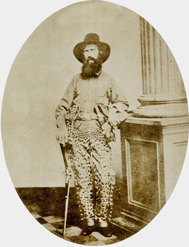 Na titulní fotografii drží v rukou karabinu Merrill model II, dlouhou dýku zvanou "Arkansas Toothpick" a revolver Colt. Zajímavé je, že krom stylových kalhot, má z jaguáří kožešiny rovněž pouzdra na zbraně na opasku. Rozhodně ale nebyl jediným, stylově oblečeným Texasanem v této válce. Vestu vyrobenou z jaguáří kožešiny nosil rovněž Sam Houston (1793-1863), první a třetí prezident republiky Texas. Obecně se dá říct, že Texasané měli kožešiny v oblibě, jelikož příslušníci 8th Texas Cavalry měli kalhoty vyrobené z medvědí kožešiny a jeden měl dokonce oblečenou celou medvědí kůži.