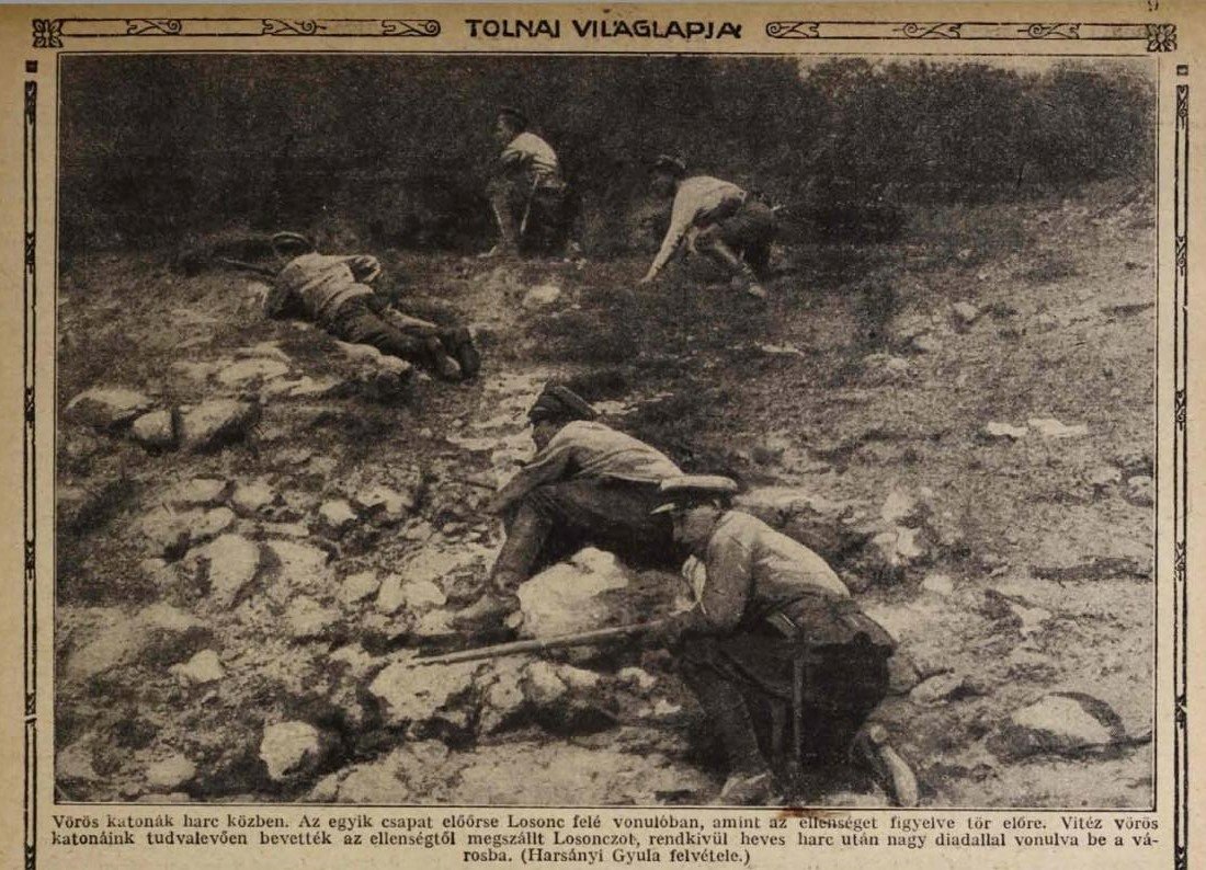 Výstřižek z dobového maďarského tisku; bolševici při Lučenci