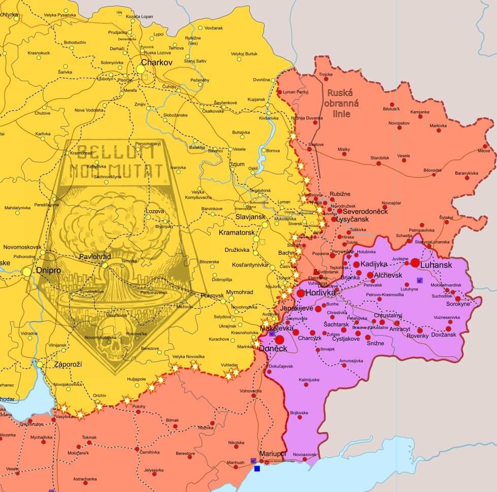 Oko všímavého čtenáře by si mohlo všimnout, že jsme po 9 dnech lehce upravili mapu, to tak nějak obecně charakterizuje současné boje, co se týče územních změn.