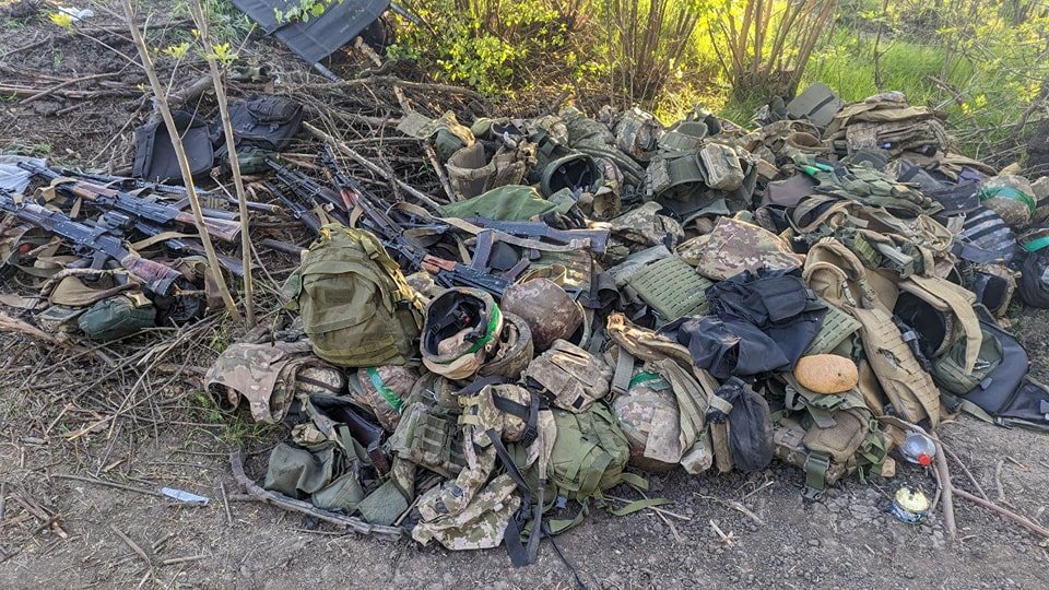 Mezi hromadou krvavého oblečení, vybavení a zbraní leží bochník chleba s kulkou uvnitř. Projektil prorazil auto, batoh a uvízl v chlebu, čímž zachránil život ukrajinskému vojákovi. V lesích u Bachmutu se nyní povaluje mnoho podobných hromad, které vznikají, když se zdravotníci potřebují dostat skrz výstroj k ošetření raněných. Vybavení je následně popsáno komu patří, protříděno a pokud je použitelné (především zbraně), tak se vrací k jednotkám, ke kterým zranění vojáci patří. Autorem fotografie a příběhu Bohdan Kutjepov.
