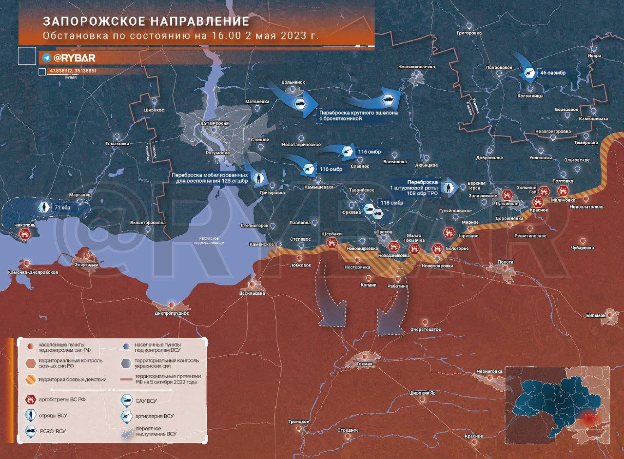 Záporožský směr, situace ke dni 2. května 2023 v 16.00 hod.