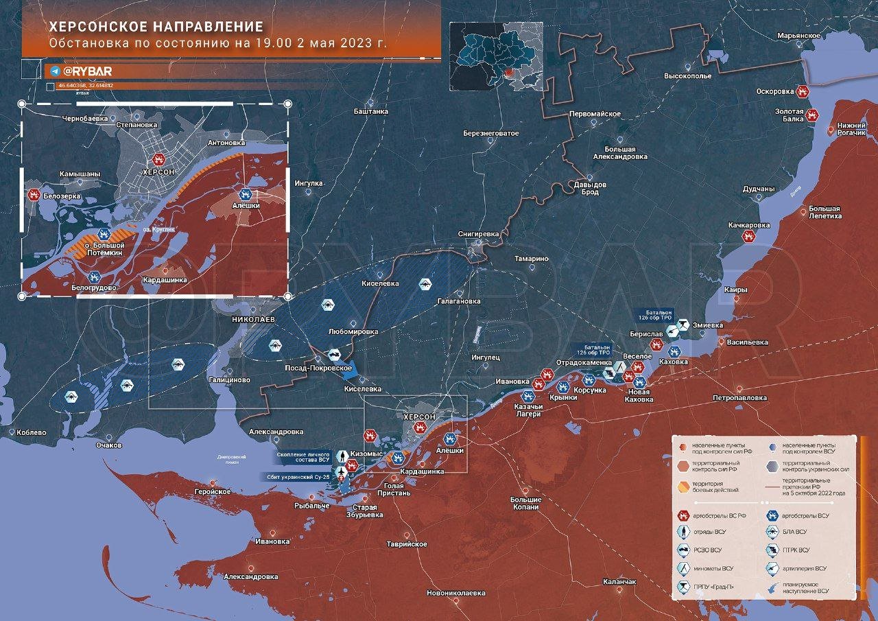 Chersonský směr, situace ke dni 2. května 2023 v 19.00 hodin