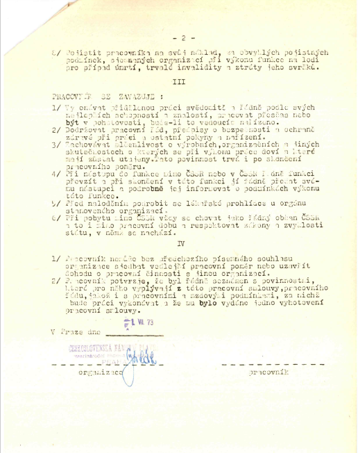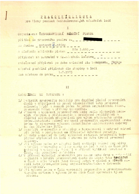 7/ Svůj nástup do podniku volte tak, abyste se mohl seznámi se základními povinnostmi a právy zaměstnance Československé námořní plavby a zařídit potřebné záležitosti jako: