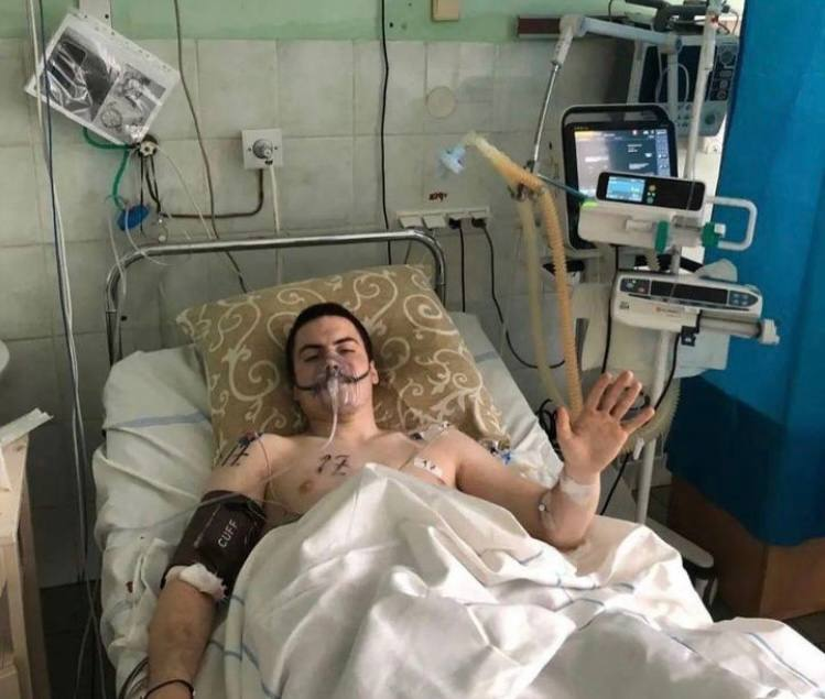 Ten voják co doslova skočil na minu přežil a jednu nohu se podařilo zachránit, o druhou přišel (už při explozi).