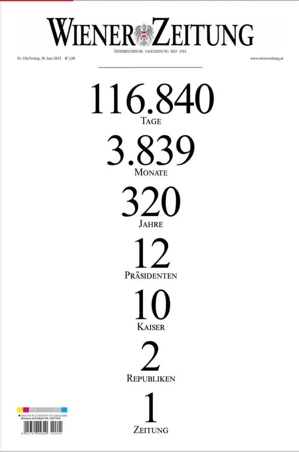 Dne 30. června 2023 vyšlo poslední tištěné číslo Wiener Zeitung