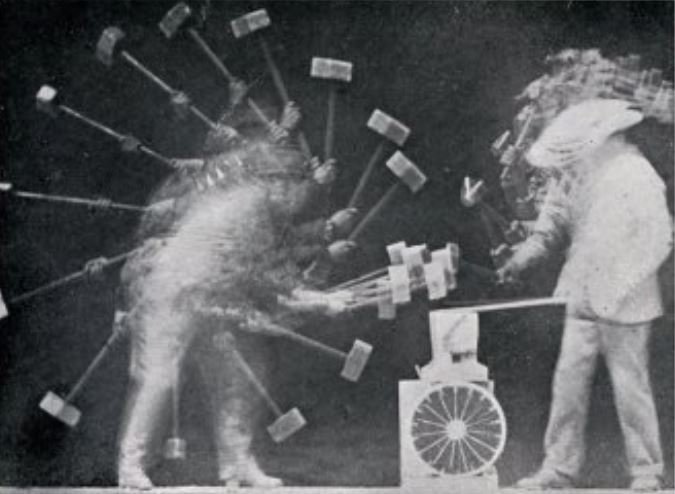 Étienne-Jules Marey (1830-1904) byl francouzský vědec, lékař, fyziolog a chronofotograf. Jeho největším snem bylo poskytnout lidem zprávu o přesných pohybech, které oči nemohou sledovat, protože jsou buď příliš rychlé, příliš pomalé nebo příliš komplikované. Kolem roku 1880 vyčerpal všechny grafické metody pro studium pohybu a začal se věnovat fotografii. O dva roky později, jeho speciální fotoaparát dokázal zaznamenat 12 snímků za sekundu (všechny na jeden jediný obrázek). Roku 1894 jeho tvorba vyvrcholila sérií s názvem Le Mouvement. Na mnoho tehdejších umělců působily tyto pohybové studie téměř zázračně. Jeho chronofotografie ovlivnily zejména díla italských futuristů: Bragaglia, Balla, Boccioniho, Russolo a abstraktní malíře Ballu, Kupku i Duchampa.