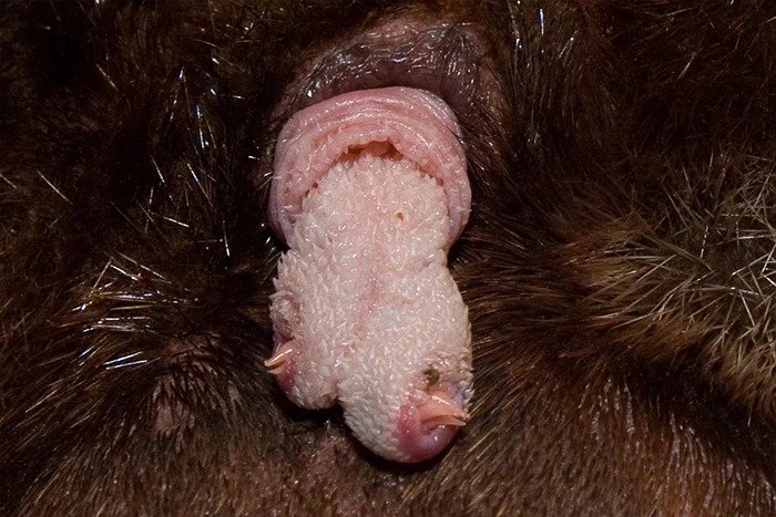 Držte si klobouky vážení a děti dejte zase spát, přichází ptakořitní a jejich... tamtononc. Ptakopysci, ježury a paježury jsou nejprimitivnější skupinou savců a jsou jiní vskutku v mnoha ohledech. Nejnápadnější odlišností je "zobák" (rostrum) nebo jedová ostruha na zadních nohách, ale samozřejmě zcela nejvíce se liší způsobem rozmnožování. První velká odlišnost tkví v kloace, která je naprosto shodná s ptačí (či plazí). Nemají dělohu a pochvu (k oplodnění dochází ve vejcovodu), mají pár vaječníků, ale jen levý je funkční (také stejně jako u ptáků). Samci nemají šourek ani semenné váčky – varlata jsou v břišní dutině poblíž ledvin. Spermie se tvoří jen v době rozmnožování (varlata se v tu chvíli zvětšují až na trojnásobek) – jednou ročně. Po zbytek roku samci spermie nemají, ale nepodléhejte panice - akt je vždy úspěšný (!) Paní ježurová snáší vejce z kloaky přímo do vaku, který má v době snůšky na břiše. Vak je s předním otvorem (směrem k hlavě) a tvoří se jen v době rozmnožování. Ptakopysk snáší vejce do hnízda. Stejně jako všichni ostatní savci mají ptakořitní mléčné žlázy, avšak nemají prsní bradavky, jen tzv. mléčná políčka – maličká místa, kde je mléko vytlačováno na povrch těla (někdy se tomu říká pocení mléka) a odkud ho mláďata olizují. Potud jsou rozmnožovací záležitosti stejné pro ježury i ptakopysky, ostatní jsou rozdílné. Samec ježury má v poměru k tělu velmi dlouhý a silný penis – obvykle okolo 7 cm dlouhý a 2,5 cm široký. Penis slouží jen pro páření, proto je za normálních okolností ukryt v kloace. Je tvořen právě kůží kloaky a na konci je "rozvětven" do čtyř vrcholů – jakoby jeden velký penis se čtyřmi malými na konci, ty jsou uspořádány vedle sebe v jedné řadě. To samo o sobě je dostatečně bizarní, ale tím to nekončí. Dlouho nebylo známo, jak vlastně samec ježury funguje, když jeho penis naprosto neodpovídá stavbě pohlavního ústrojí samice. Bylo provedeno několik pokusů o odběr spermatu pomocí elektroejakulace, ale nikdy se to nepodařilo. Samčí penis byl ztopořený do obludné podoby se všemi čtyřmi konci, ale výsledkem nikdy nebyla ani kapka ejakulátu. Nakonec se podařilo docílit erekce ježuřího samce přirozenou cestou, čímž se ukázalo, že ačkoli má penis čtyři zakončení, ztopoření a pohlavního aktu se účastní vždy jen dvě krajní – levá nebo pravá (ostatní dvě jsou ochablá a zatažená do těla vlastního penisu. Důvod není zcela znám, soudí se, že to souvisí s konkurenceschopností mezi ostatními samci, ale stejně tak může být souvislost s milostnou polohou, v jaké se ježury právě páří, v kontextu s tím, že má samice funkční jen levý vaječník (páří-li se hlavami k sobě, je třeba jiná strana penisu než, když se páří hlavami od sebe).