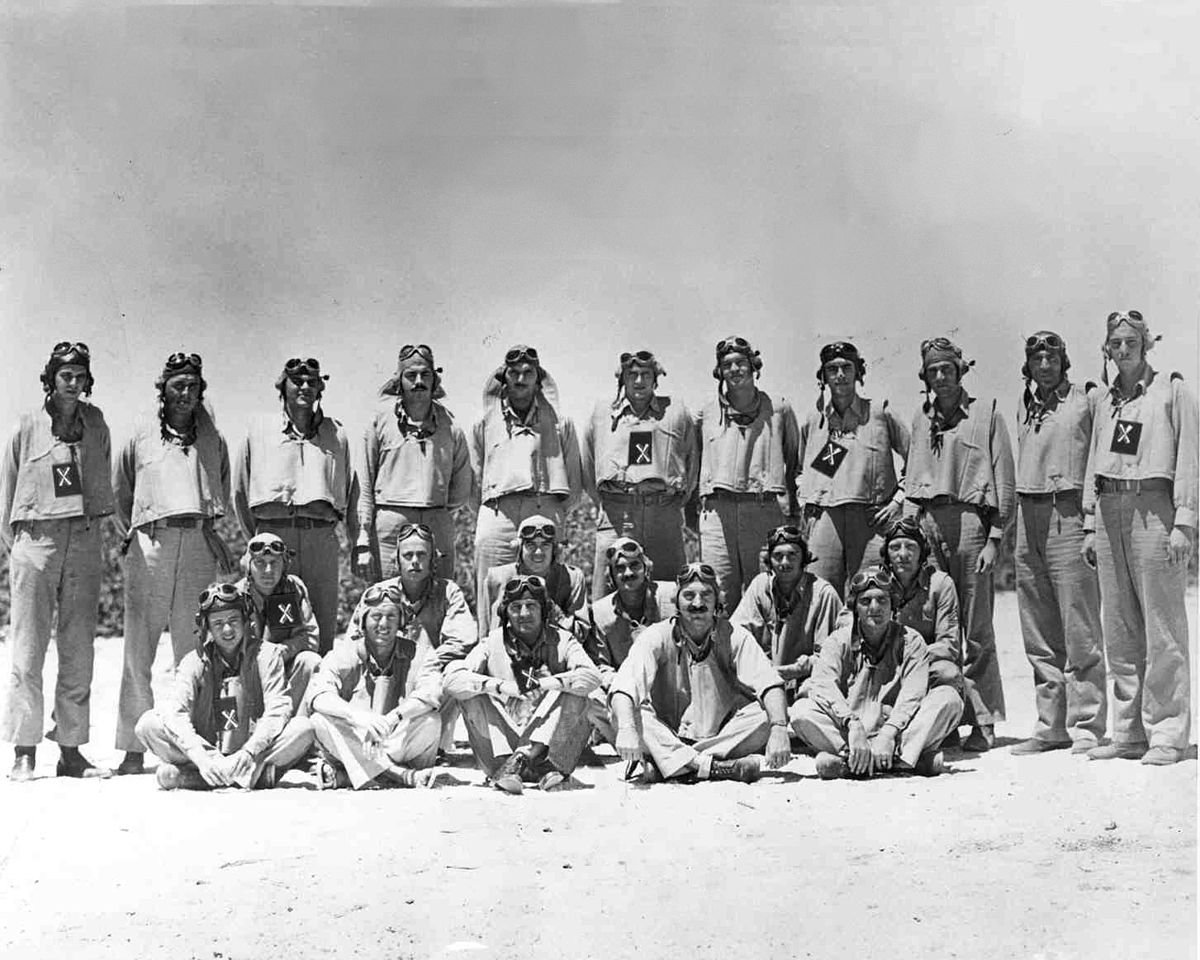 Piloti VMSB-241, 1stLt Daniel Iverson klečící třetí zleva