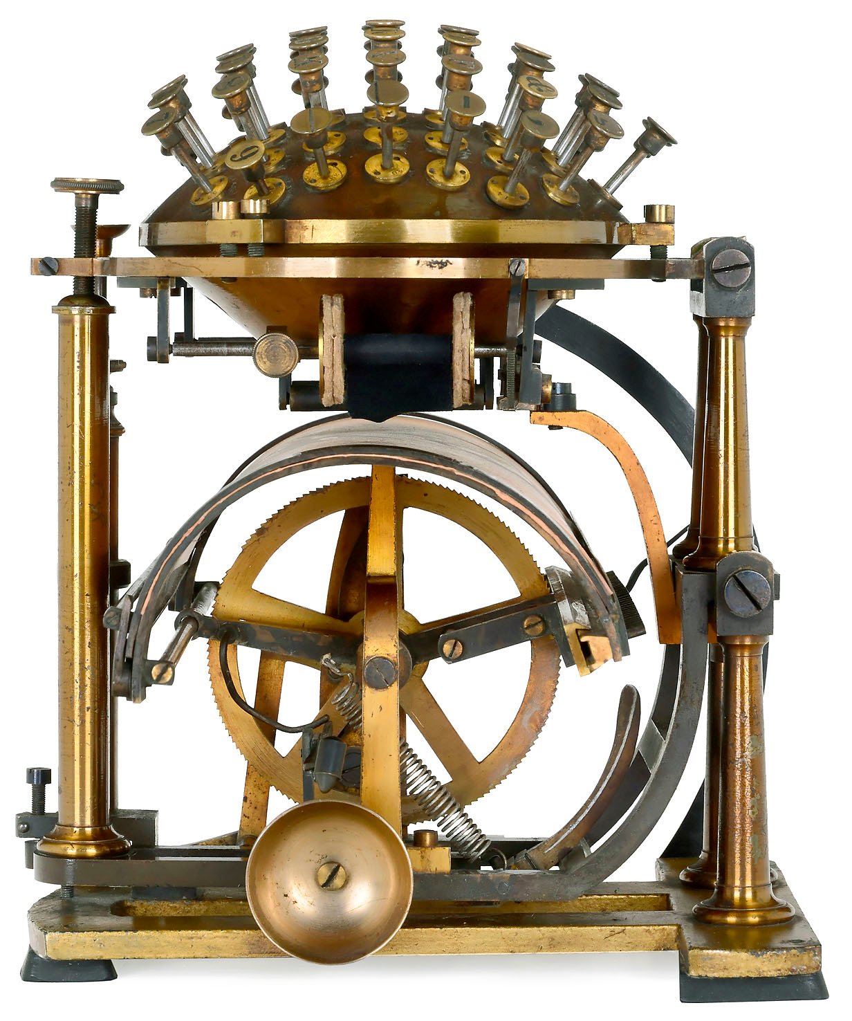 Jednoznačně nejpodivnější psací stroj představil roku 1865 dánský vynálezce Rasmus Malling-Hansen (1835-1890) pod názvem "Skrivekuglen" (anglicky známý jako Malling Hansen Writing Ball). První kus byl vyroben až o pět let později, přesto jde o první komerčně vyráběný psací stroj na světě. Od svého majitele vyžadoval skutečně podivnou psací polohu - museli jste stát nad ním v nepřirozeném náklonu a cvakat směrem dolů. Později vzniklo několik vylepšených verzí, které byly oblíbené pro velkou kompaktnost a poměrně vysokou rychlost psaní. Navíc jej stačilo obsluhovat pouze jednou rukou, což bylo často velmi žádoucí. Tento psací stroj byl oblíbeným pomocníkem mezi různými básníky a spisovateli, mezi které patřili například Jacob Burckhardt a Friedrich Nietzsche. Slavný německý filozof Nietzsche (1844-1900) si jej pořídil roku 1881, když se mu začal zhoršovat zrak. Zachovalou psací kouli můžete vidět v Drážďanském Technischen Sammlungen. Jedinečná funkčnost tohoto psacího stroje z něj v dnešní době dělá vyhledávaný sběratelský kousek a odhadovaná cena za kus je asi 180 000 dolarů.