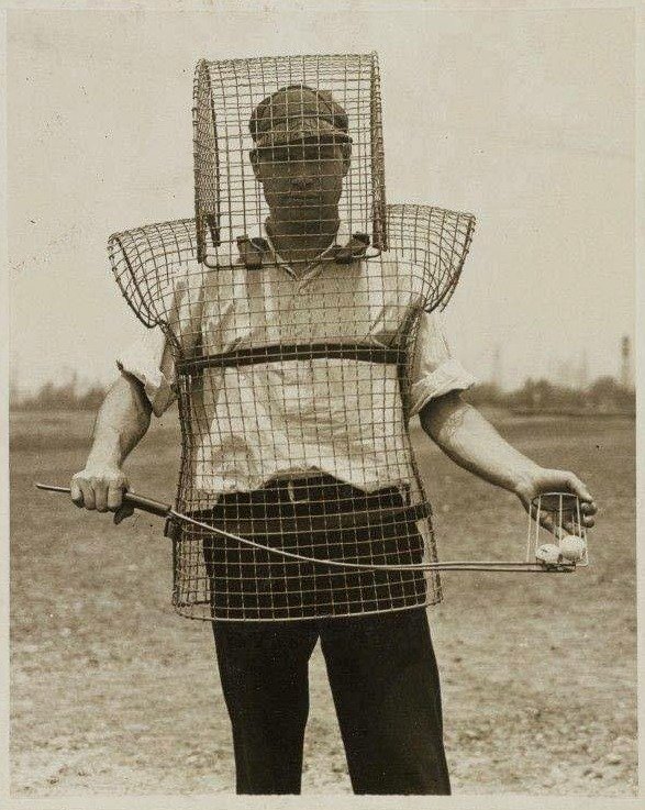 Jistý caddy Mozart Johnson má oblečenou drátěnou klec přes hlavu a horní část trupu jako ochranu před letícími golfovými míčky. Šlo o pozoruhodné bezpečnostní zařízení, které bylo možno vidět na golfových hřištích v Kalifornii ve dvacátých letech minulého století. Nutno poznamenat, že sběrem ztracených golfových míčků se dalo vždycky slušně vydělat. Nedávno se třeba mluvilo o tom, že Američan Glenn Berger si takto ročně vydělává přes 25 milionů korun. Kolem roku 2000 se dostal do finanční tísně a napadlo ho, že jezírka na golfových hřištích jsou plná míčků, které by se ještě daly použít. Začal se tedy pro míčky potápět. Jeho služby využívá většina hřišť na Floridě. Za každý rok nasbíral milion až milion a půl míčků. Při cenně jeden až dva dolary za míček si tak během dosavadní kariéry lovce míčků vydělal v přepočtu téměř 380 milionů Kč. Vylovené míčky od něj kupují začínající golfisté, kteří nehledí na jejich stav. Podle profesionálů však ztrácí původní kvalitu už po 24 hodinách ve vodě. Nutno poznamenat, že tato jezírka jsou plná aligátorů, hadů a všelijaké další havěti.