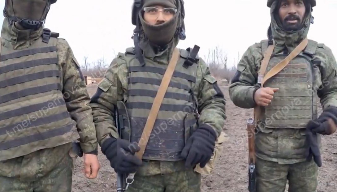 Somálec, Ind a Syřan, aneb noví rekruti ruské armády. Video je z konce roku 2023.