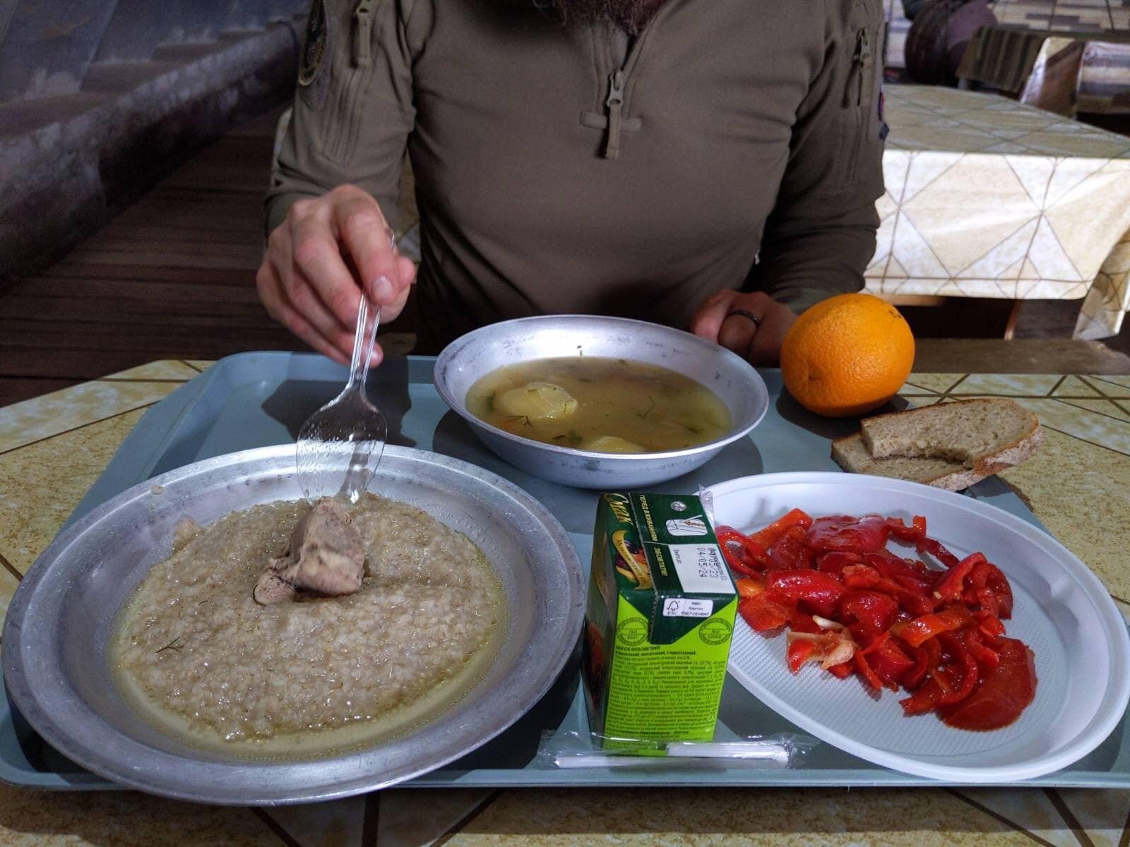 Poté se jede vykládat. Tentokrát vše vykládáme na jednom místě. Na materiál, co patří jinam tam již čekají vozidla. Vykládáme několik beden termoprádla, další bedny ponožek, zimního oblečení, přes 100 párů zateplených holínek a zimních bot. Dále jsme doručili obrovskou televizi pro AEROROZVIDKU, vybavený zdravotnický batoh, 4 ks elektrocentrál, zmiňovaný ultrazvuk s gely, ohřívací deky a termofolie pro raněné, 10 ks skládacích nosítek, spacáky, několik krabic spotřebního lékařského materiálu a zákopová kamínka. Vše za světla čelovek, nejlépe pod červeným nebo modrým svitem, aby ruch nelákal útočné drony nepřítele.
