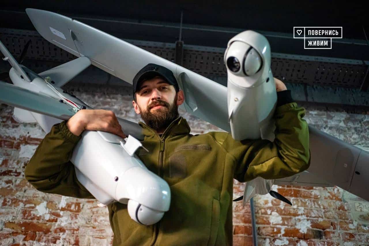 niekoľko druhov ukrajinských loitering dronov - UJ-22, UJ-25 Skyline, perun, bober