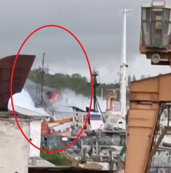 Ruskem dosazený guvernér okupovaného Sevastopolu Michail Razvozhajev řekl, že dnes ráno byl odražen útok protilodní rakety R-360 Neptun. Tvrdí, že požár v přístavu vznikl kvůli padajícím troskám. Partyzánské hnutí ATEŠ uvádí, že Rusko po raketovém útoku utrpělo v Sevastopolu několik mrtvých a mnoho zraněných. Na místo nadále přijíždějí sanitky.