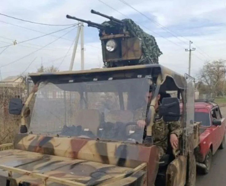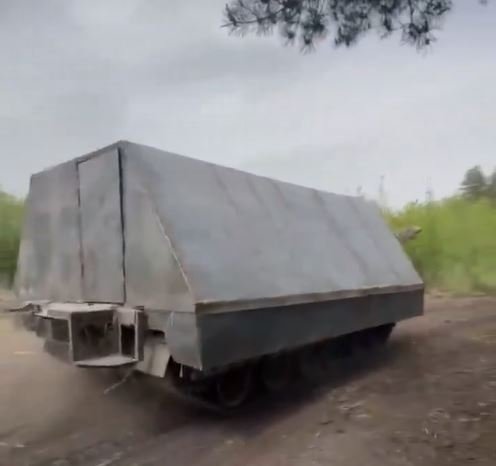 Improvizovaný transportér v podobě zaklíckovaného nákladního automobilu Ural. Zaznamenány již byly dva zničené tyto automobily kdesi u Robotyne.