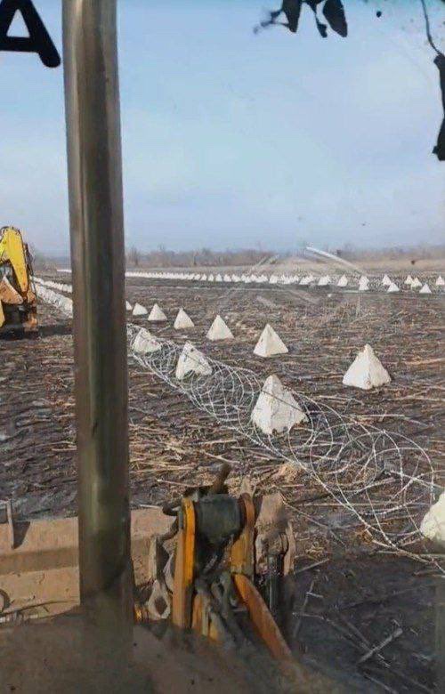 Konečně můžeme vidět "dračí zuby" vzájemně provázané pomocí ostnatého drátu. Tyto můžeme vidět na fotografii z výstavby nových opevnění v Černihivské oblasti. Na budování obranné linie se podílí velké množství stavební techniky a lidí. Díky tomu se během posledních měsíců jeho velikost zvýšila o 63 %.