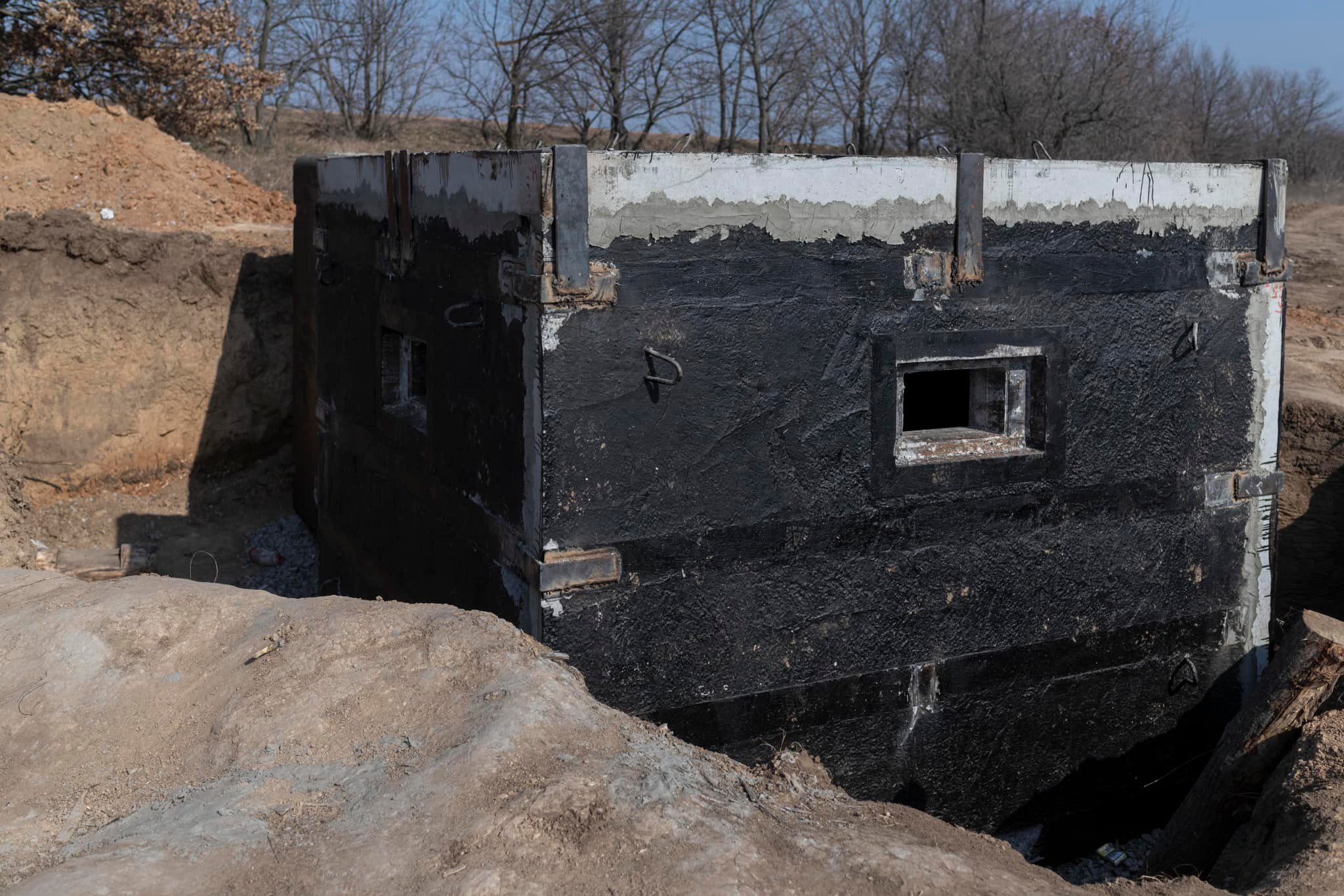 Pár zajímavých fotografií oněch ukrajinských válcových bunkrů co mají chránit vojáky před ruským dělostřelectvem. Myslím že se už dřív tvrdilo, že mají vchody z obou stran, pro případ závalu.