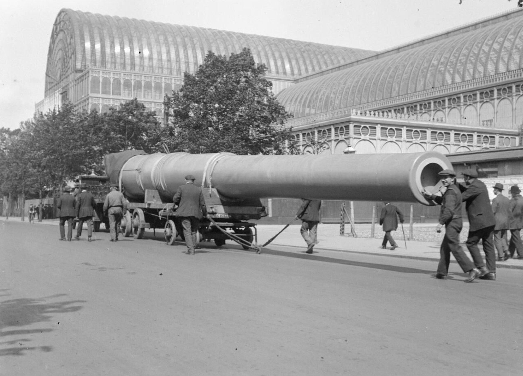 Britské 18palcové námořní dělo BL Mk 1 se přesouvá do Imperial War Museum v Crystal Palace v Londýně. Tato zbraň je dřevěná maketa, ale skutečná verze vážila 150 tun. Mk 1 byla největší britská námořní zbraň, která kdy byla vyrobena, a druhá největší vůbec, překonala ji pouze pozdější japonská 18,1 palcová děla. Děla byla navržena pro HMS Furious, ale později byla instalována na monitory v jednoplášťových věžích. Jedno z těchto děl má námořní rekord s nejdelším doletem, když během první světové války střílelo na německé pozice ve vnitrozemí vzdálené 33 000 metrů.