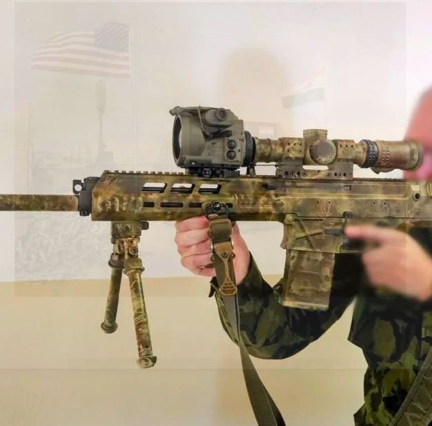 BREN 2 PPS nejen s fasovaným Nightforce ATACR 1-8x, ale také s termovizní předsádkou TigIR 6M, která je fasovaná pro Minimi Mk.3 (PPS se standardně fasuje s AN/PVS-22).