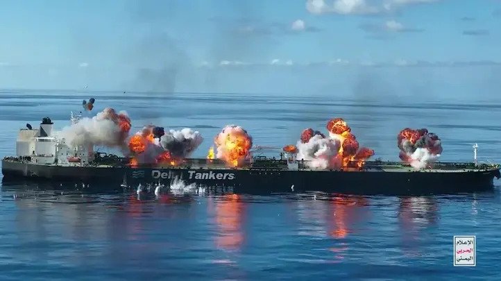 Hůtiúm se podařilo zasáhnout řecký tanker Sounion se 150 000 tun ropy, který hoří a ztrácí ropu do moře. Tanker pluje pod řeckou vlajkou a přepravuje ropu z Iráku na Kypr. Posle posledních zpráv bylo všech 25 členů posádky evakuovaných a loď tak pluje bez kontroly. K útoku Hůtiové použili střelbu z malých člunů.