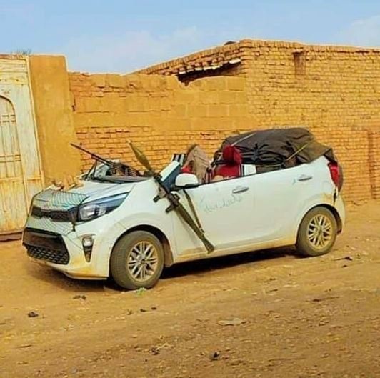 Očividně v Súdánu nemají rádi střechy - viz bitevní Hyundai Elantra a Kia Picanto